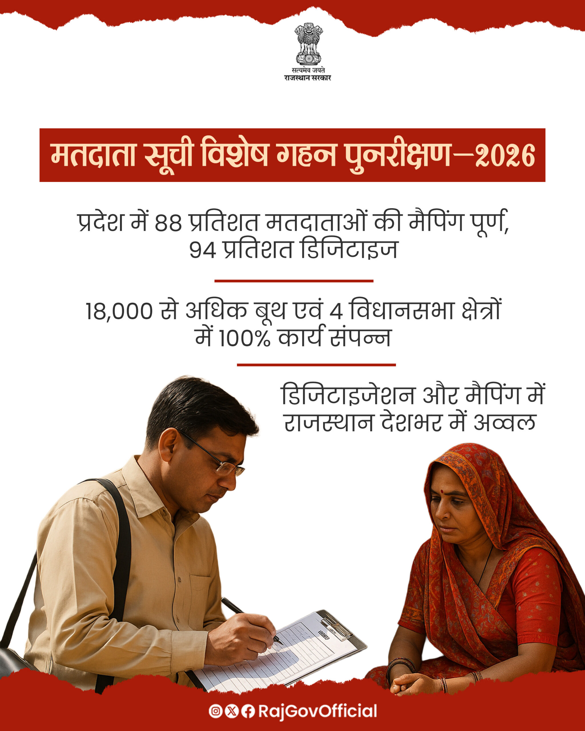राजस्थान विशेष गहन पुनरीक्षण 2026 हर नागरिक के लिए महत्वपूर्ण अवसर है जिसमें वह अपना नाम वोटर लिस्ट में जोड़ सकता है या सुधार कर सकता है।
